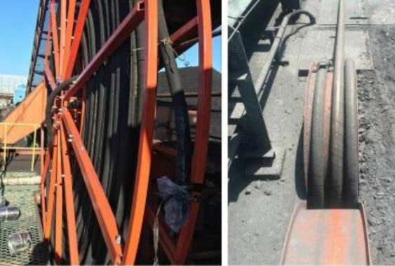 03大型物料堆場(chǎng)的堆、取料機(jī)機(jī)上供水都采用沿堆場(chǎng)長(zhǎng)度一樣長(zhǎng)的水槽供水。而采用隨機(jī)供水裝置,則是將一根具有電加熱防凍并且隨機(jī)自動(dòng)收、放的水纜,從地面向物料堆場(chǎng)的堆、取料機(jī)上進(jìn)行四季供水,使環(huán)保供水變得高效便捷。